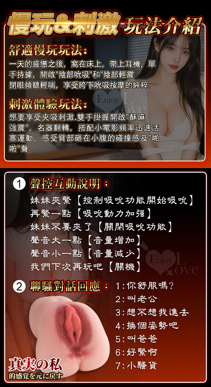 ►您現在的位置:首頁>聞音美熟女 ‧ 全智能聲控對話互動 12X吮吸+12X震動~真實の私完壁肉感雙層潮紅溫暖通道電動名器﹝附耳機﹞